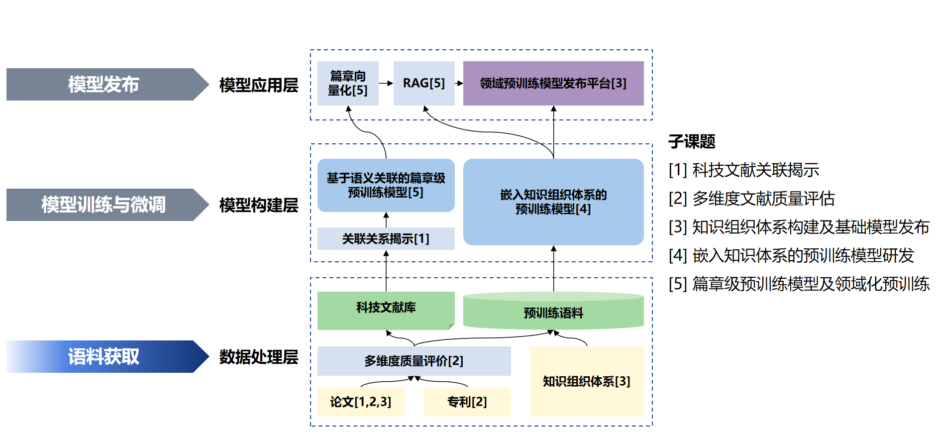 本课题面向8个重点学科领域,预期构建8个以上的领域预训练基础模型,提升科技文献内容挖掘的起跑线。课题依托于海量科技文献优势数据,研究科技文献元数据的语义标注和语义关联揭示,多维度文献质量评价体系构建,以及多粒度知识体系内容描述,系统性汇聚涵盖8个领域的优质文献,打造具有丰富语义、高质量的大规模预训练语料库。